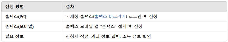 💡 온라인 신청이 가장 빠르고 간편하며, 모바일 손택스를 이용하면 더욱 쉽게 신청할 수 있습니다.